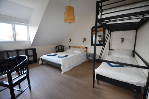 "The echo of the circuit" is a large room for 4 people to share (one double bed and two single beds, one on the mezzanine). Friendly, it is just as much as the inevitable motor circuit, which makes the reputation of the Sarthe and which logically gives its name to this room.