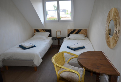 This small room is a cocoon for two twin beds. Rustic, its design will make you rediscover a taste for simple things, just like the name it bears. "The soft way" being the easiest and shortest way to reach the village of Changé across fields.